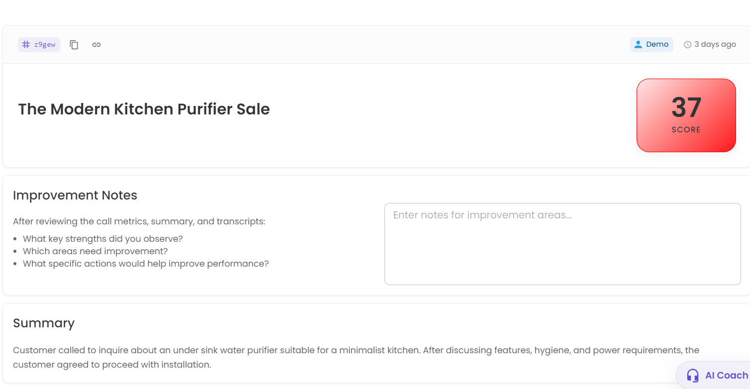 You decide what gets scored. Opening statements, discovery, objection handling, or anything specific to how your team sells