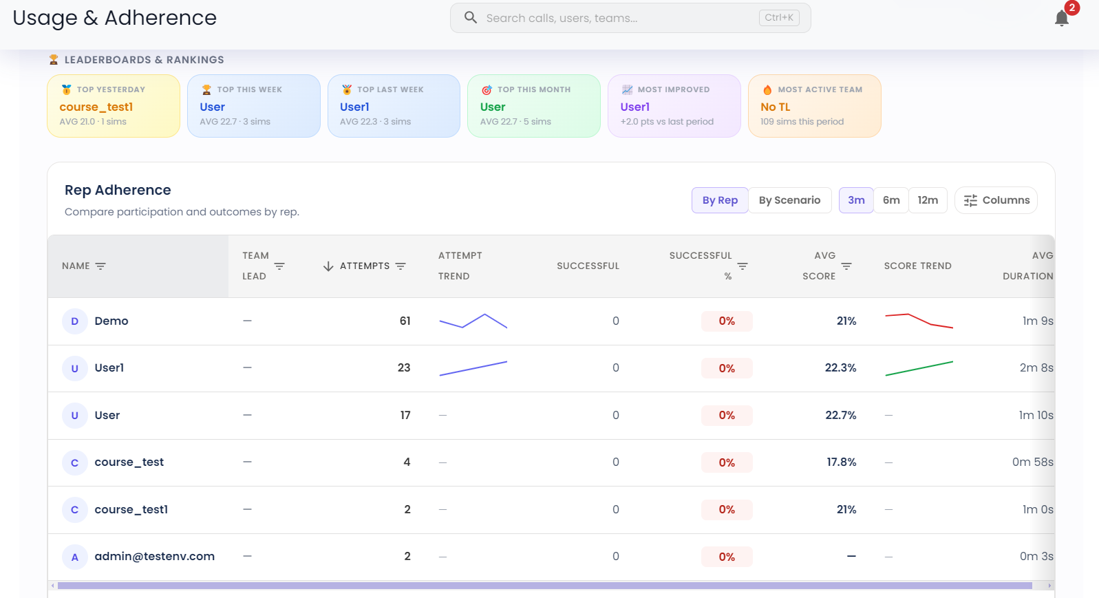 Drill into any rep and see exactly where they are strong and where they need work, skill by skill. Coaching becomes a conversation with evidence behind it.